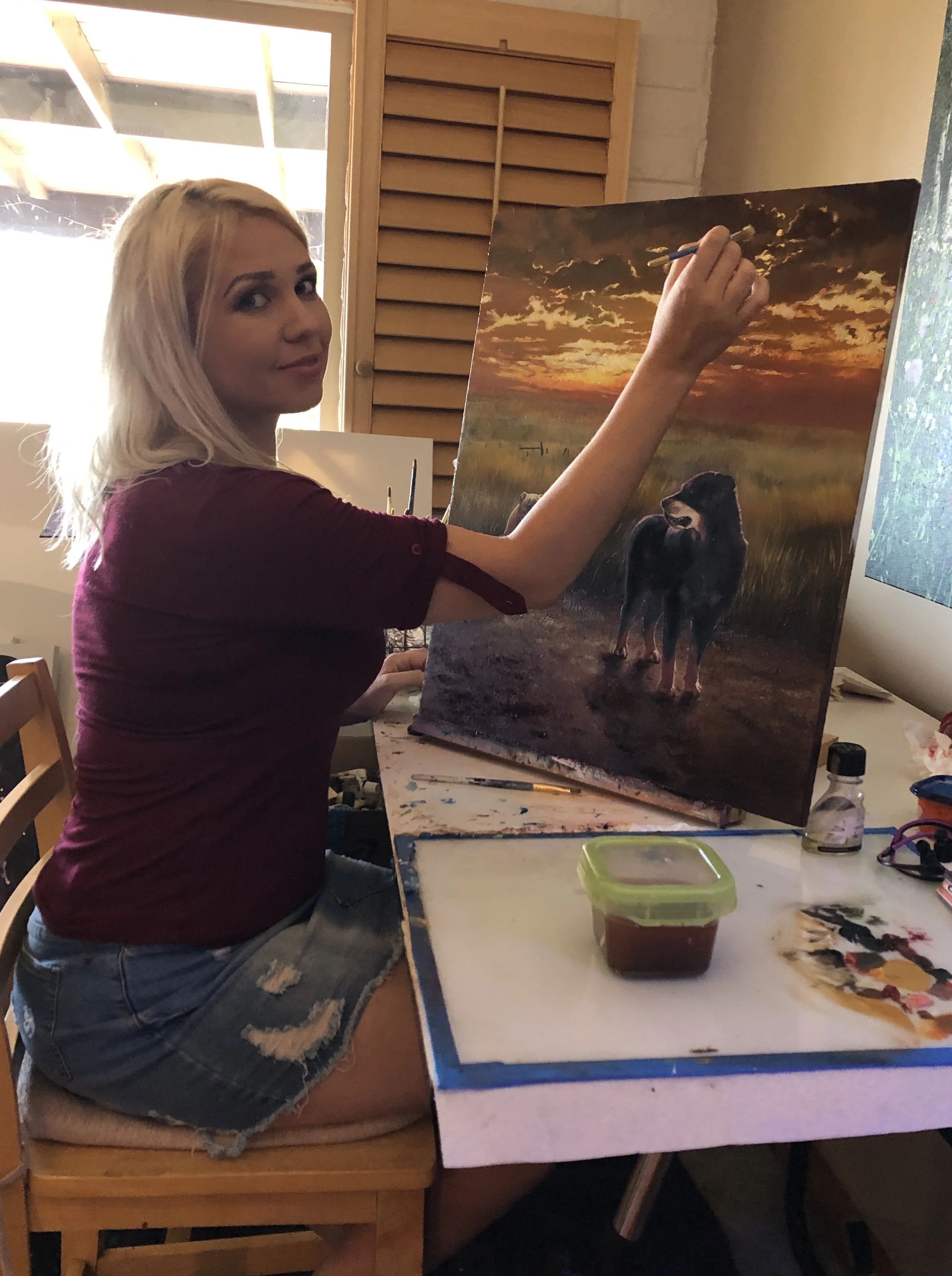 Her love of philosophy has shaped her approach to painting just as much as her technical skill. Having studied subjects like metaphysics, aesthetics, and Jungian psychology, Megan sees art as a bridge between the visible and the invisible — a language through which the unconscious finds expression. “Art,” she reflects, “doesn’t come from the part of us that knows, but from the part that knows without explanation — something that moves through us more than we direct it.”